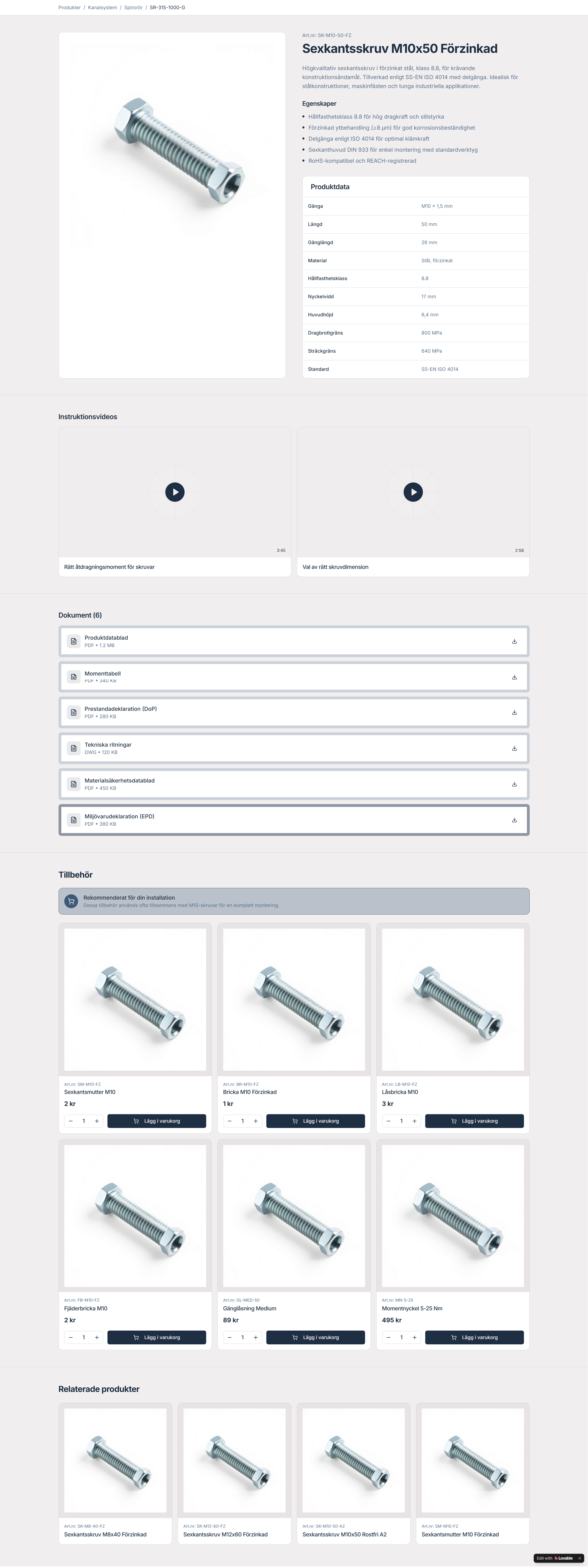 I ett internt test använde vi samma prompt i tre vibecoding-verktyg: Lovable, Replit och Vercel. Prompten utgick från att ta fram ett koncept på en B2B-produktsida för en skruv med ett antal detaljer som behövde finnas på sidan. Målet är inte att få en färdig design, utan att snabbt skapa ett visuellt underlag att kunna använda i diskussion med kund och team.